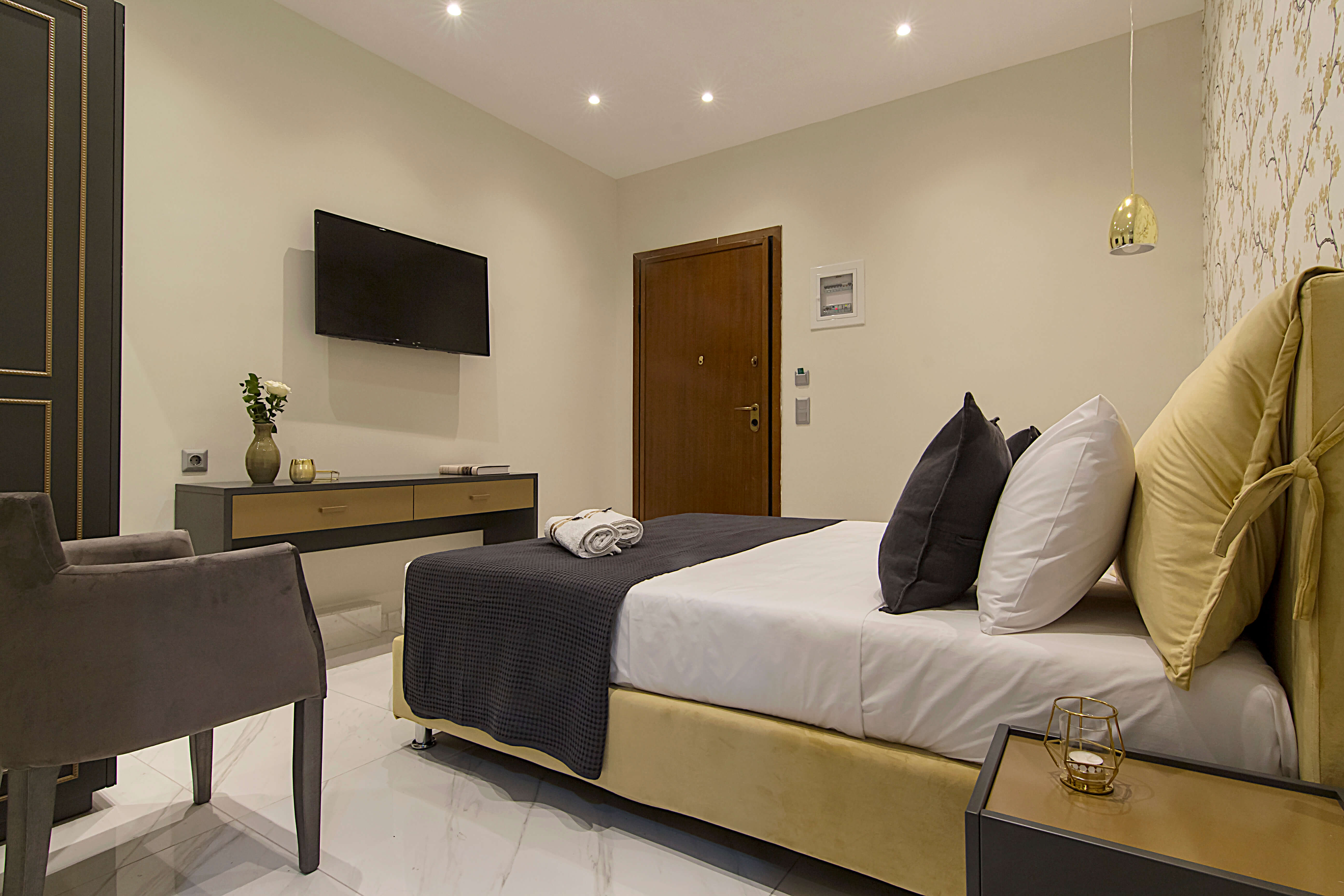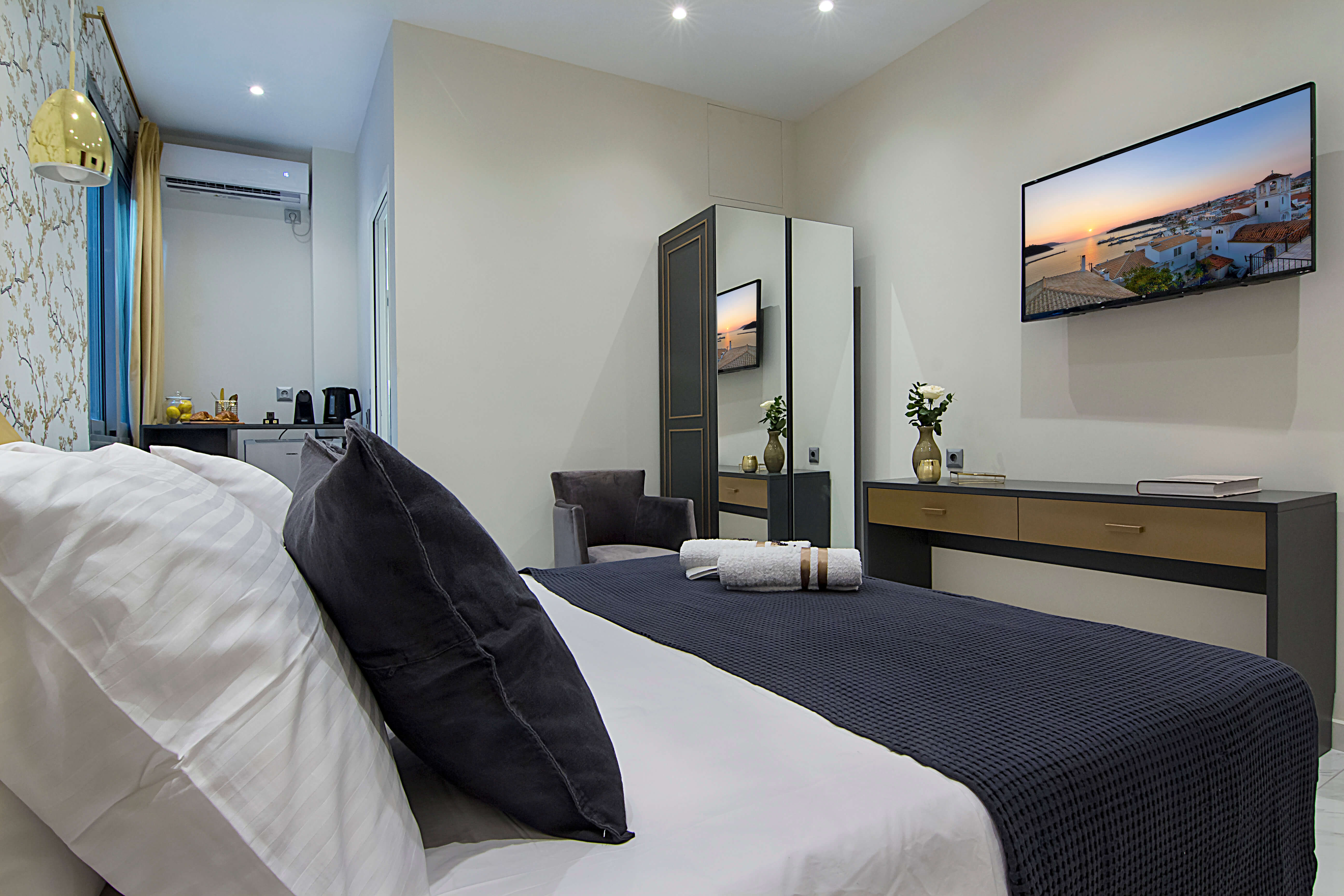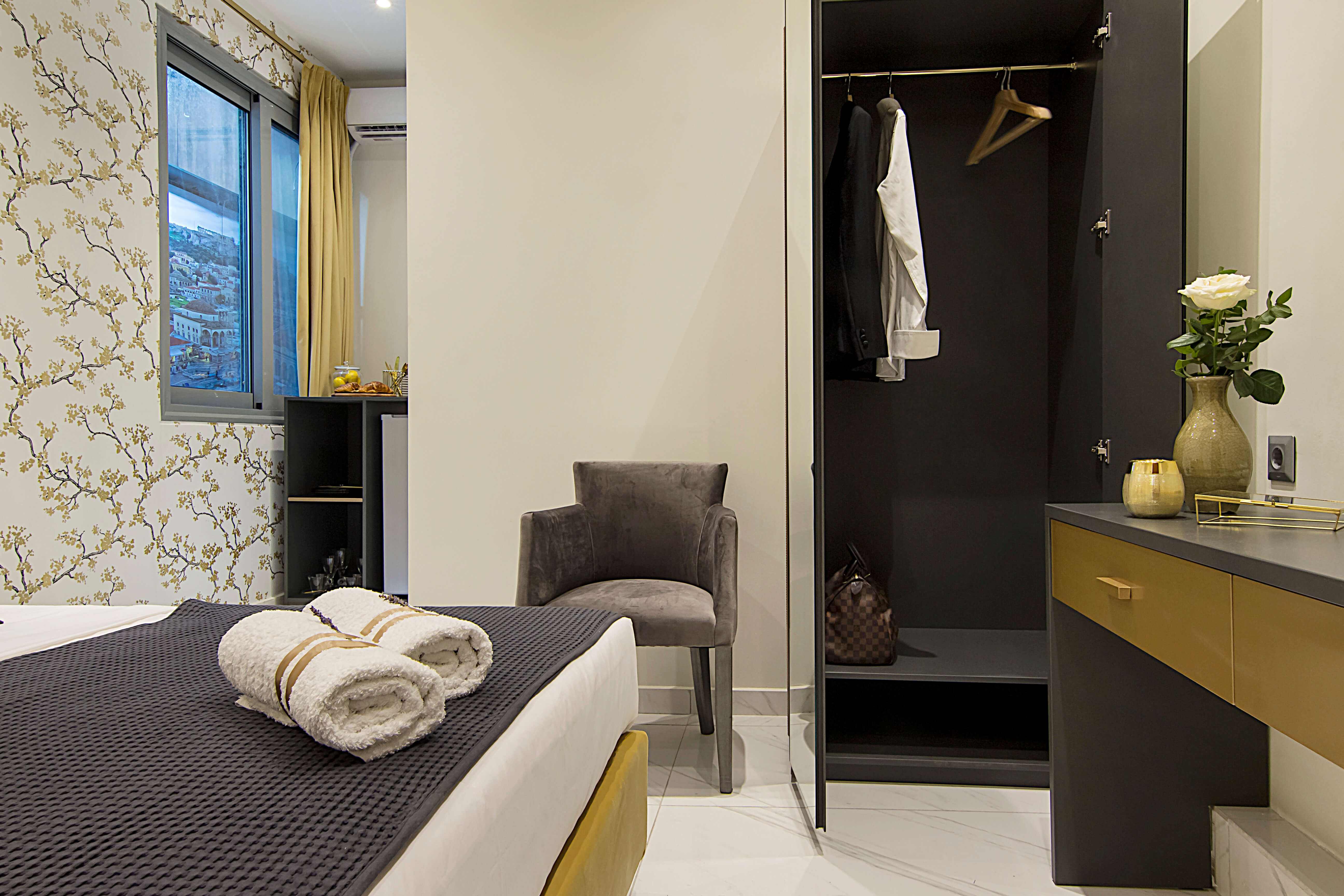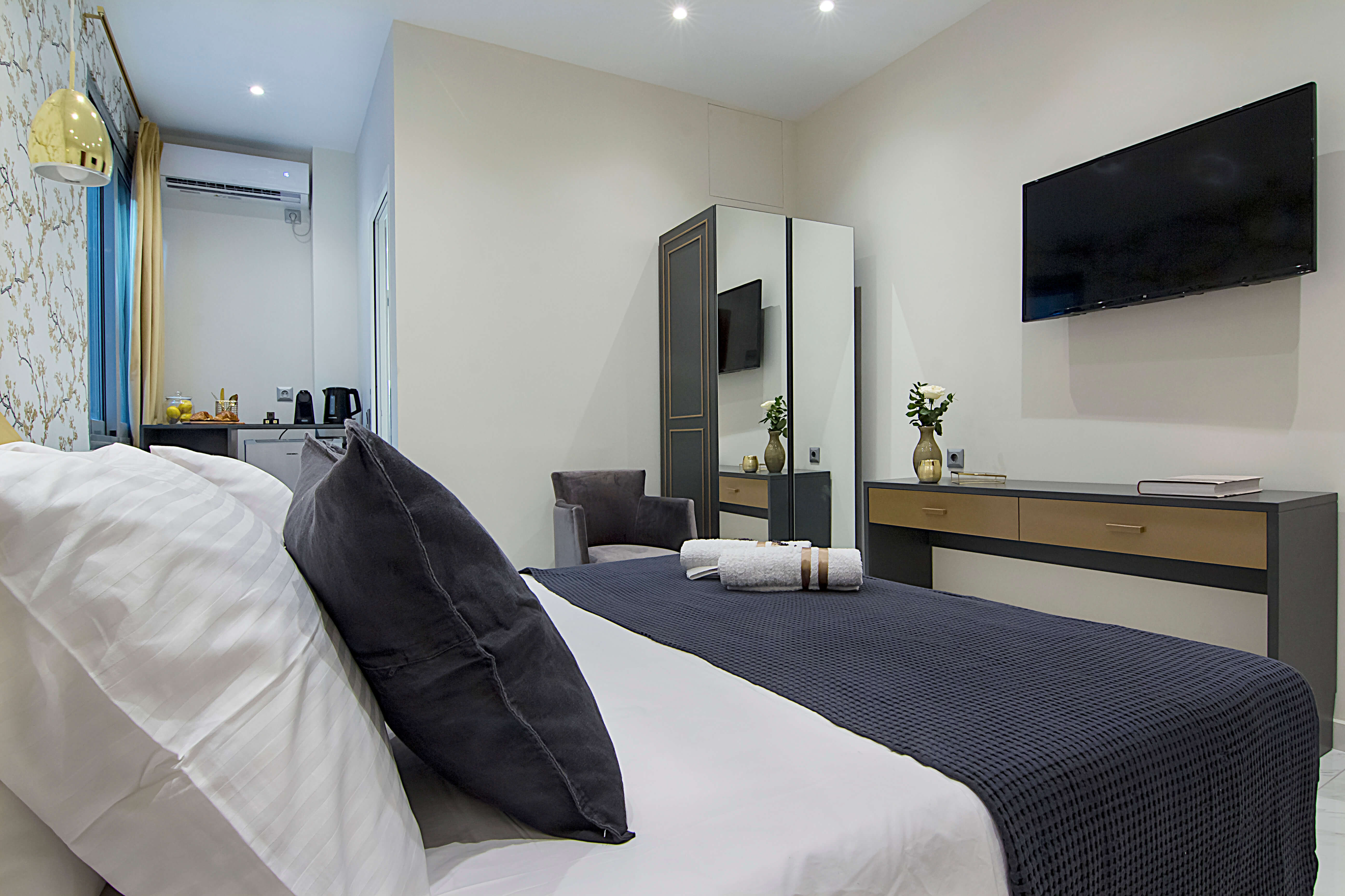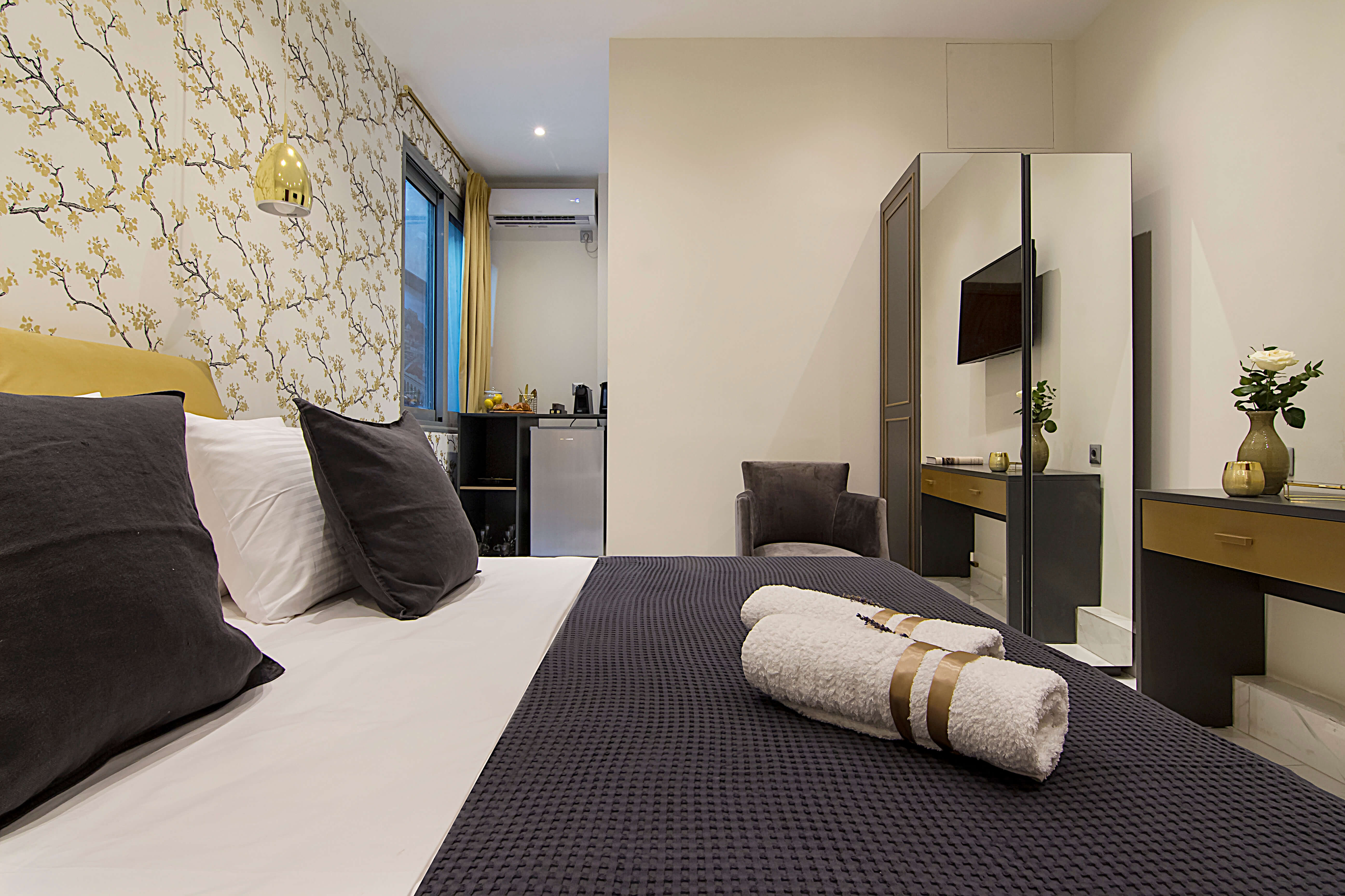 A stylish and luxurious chamber located at the very beating heart of the city of Athens, only one breath away from the iconic Syntagma Square. The property is made up of luxurious and beautiful materials, lavish curtains, extravagant furnishings and state of the art decorations. The chamber which has just been developed features a brand-new stylish bathroom complete with a spacious shower cabin and Zealot toiletries, Nespresso Coffee Machine, a Mini Bar Fridge and a large window glaze overlooking the fashionable Stadiou Avenue. The apartment building is located at one of the most prestigious and fashionable areas of the Athens center.