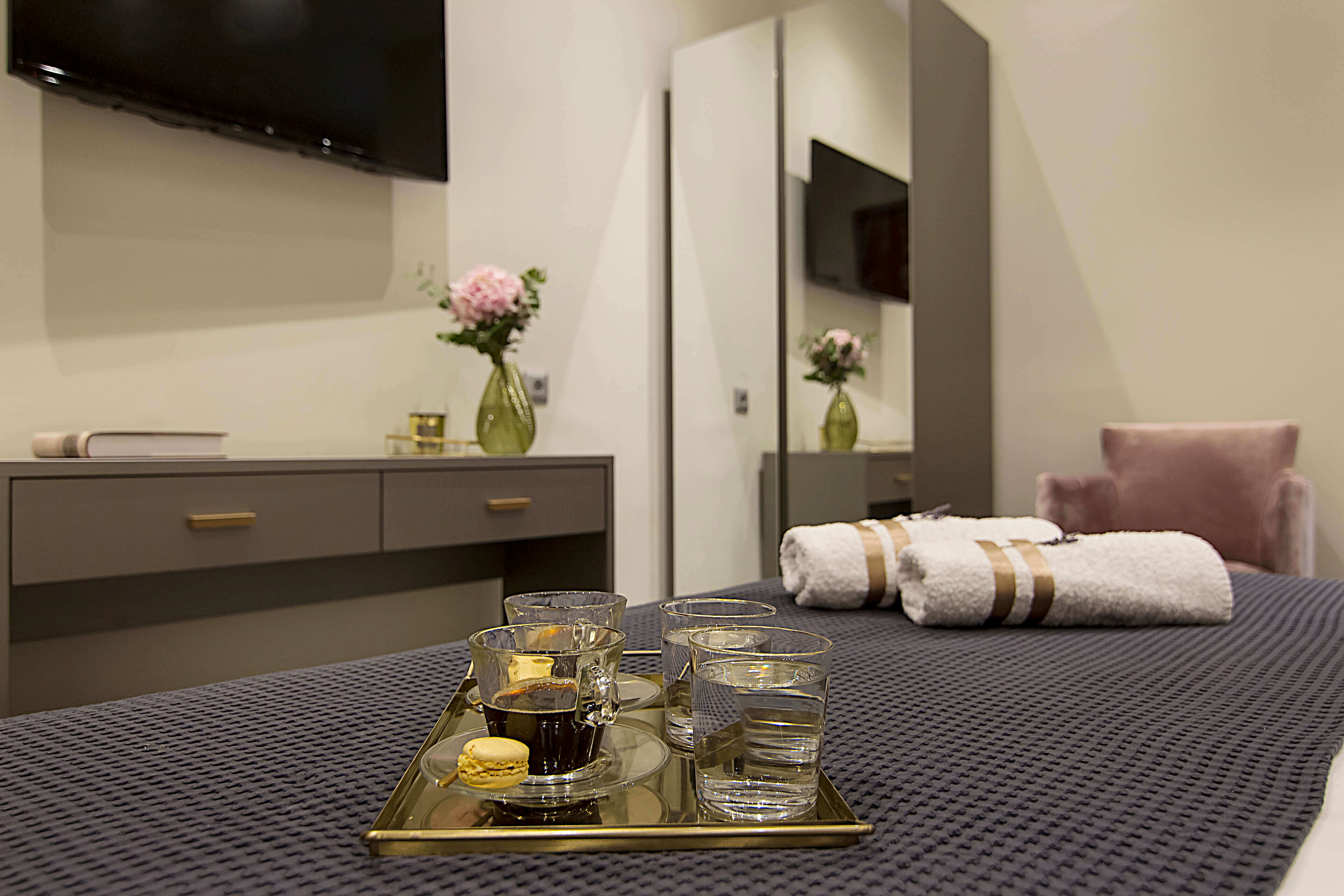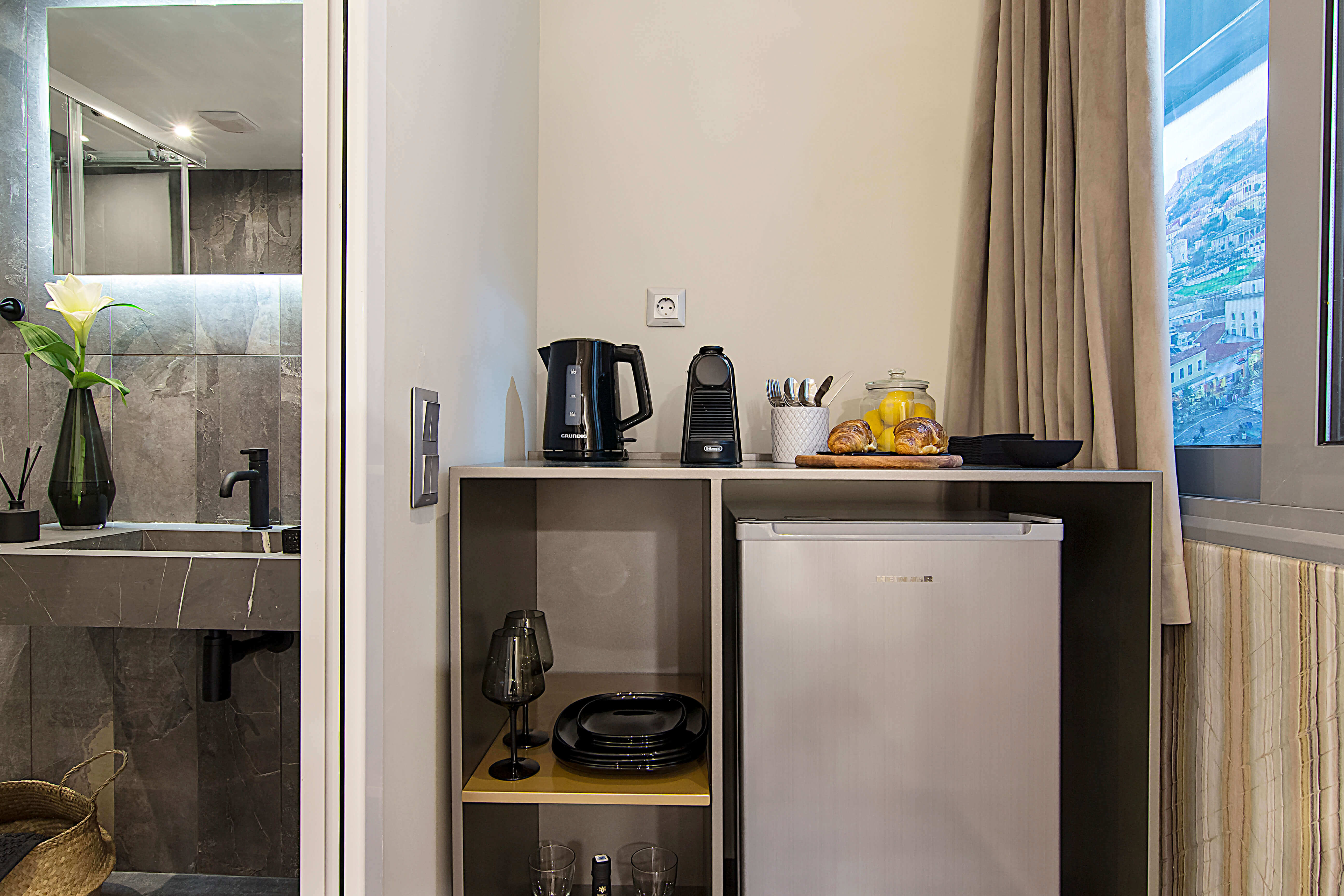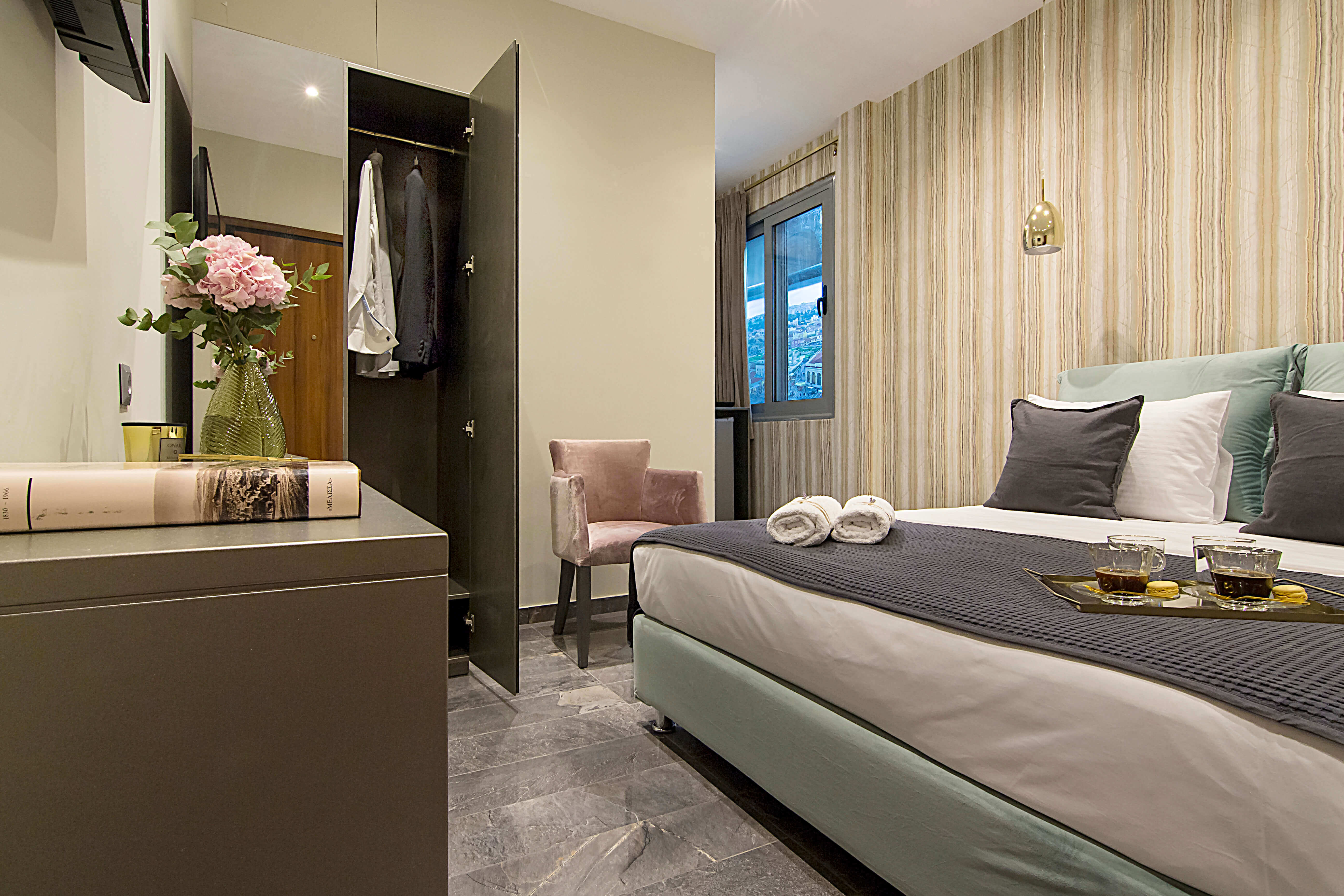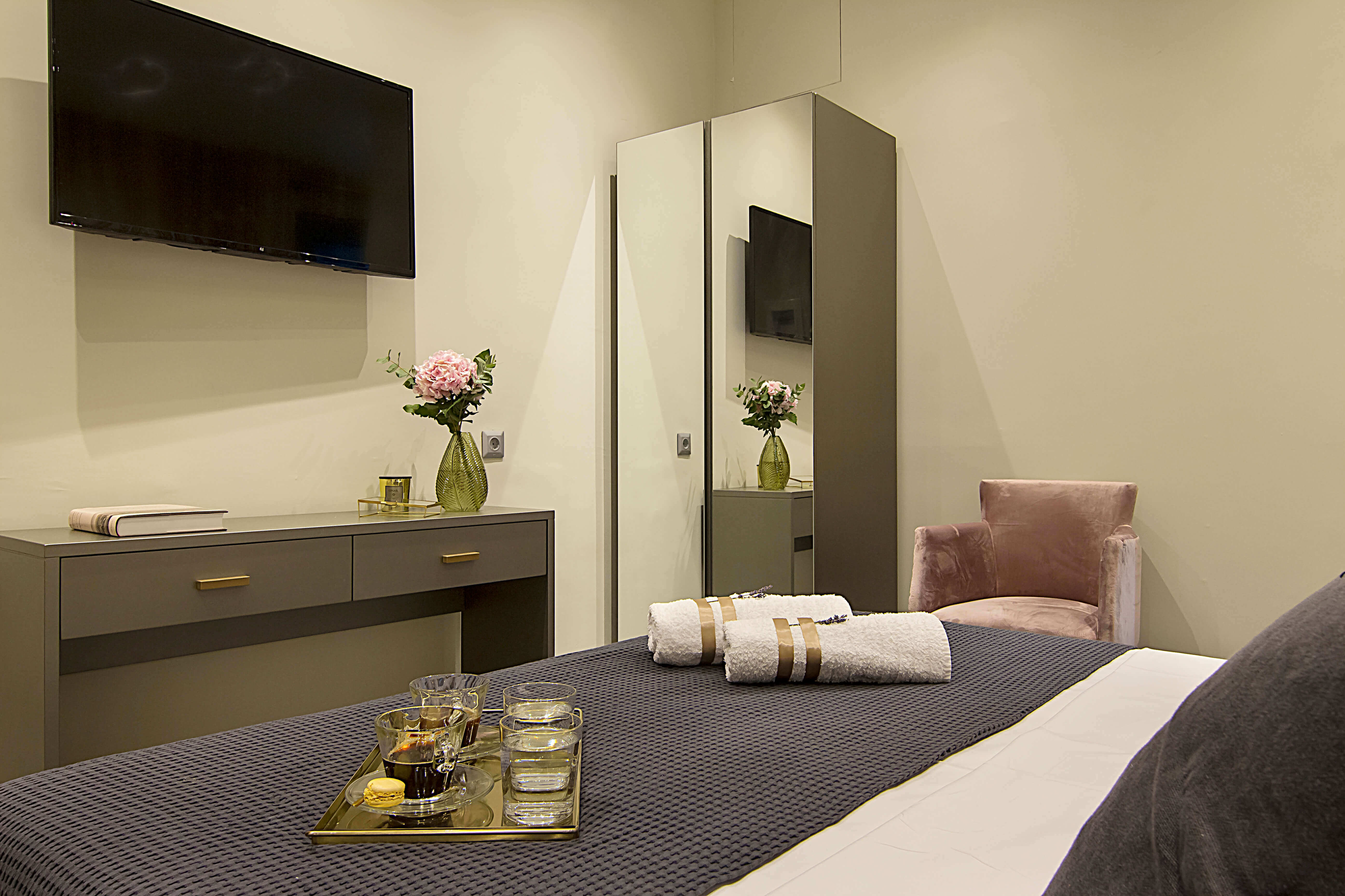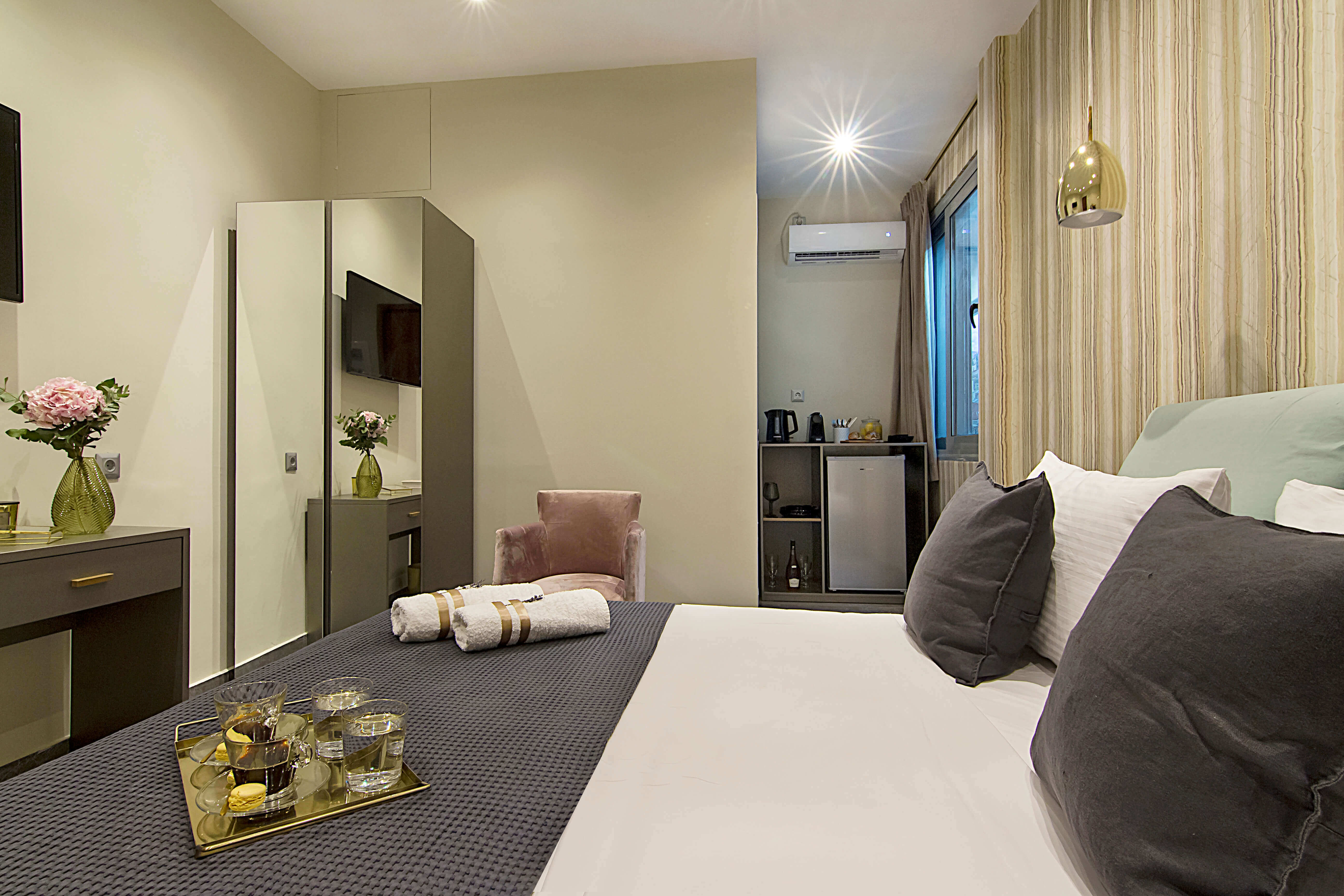 A stylish and luxurious chamber located at the very beating heart of the city of Athens, only one breath away from the iconic Syntagma Square. The property is made up of luxurious and beautiful materials, lavish curtains, extravagant furnishings and state of the art decorations. The chamber which has just been developed features a brand-new stylish bathroom complete with a spacious shower cabin and Zealot toiletries, Nespresso Coffee Machine, a Mini Bar Fridge and a large window glaze overlooking the fashionable Stadiou Avenue. The apartment building is located at one of the most prestigious and fashionable areas of the Athens center.